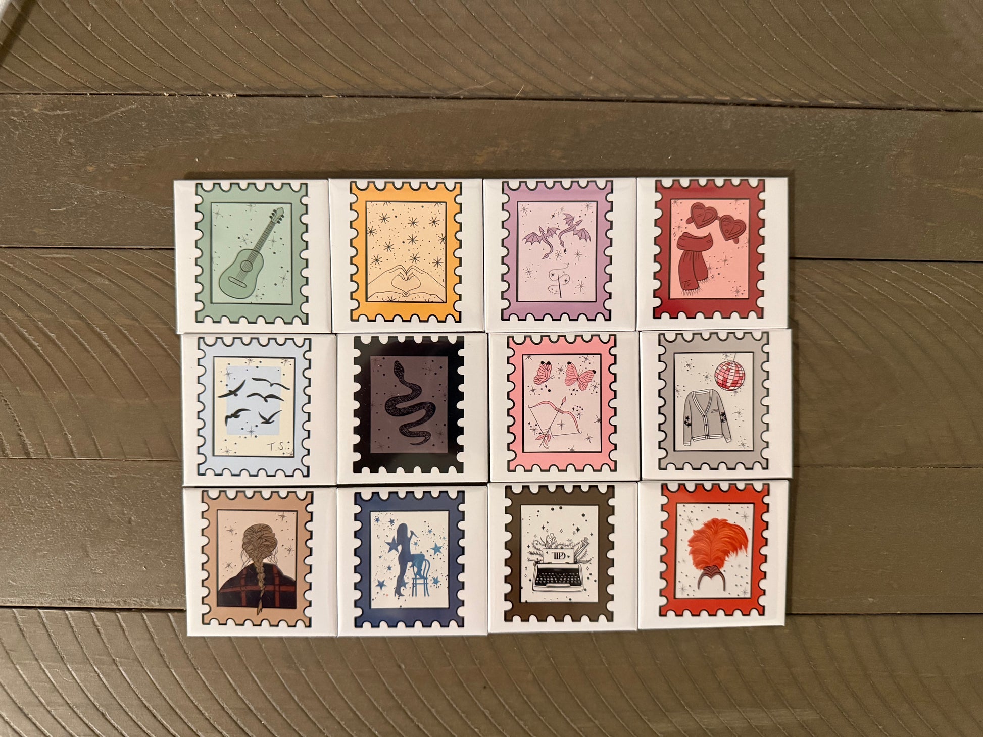 Capture the magic of every era with this exclusive collection of postage-stamp style magnets. Whether you are in your Reputation era or feeling the Folklore vibes, these magnets are the perfect way to display your fandom on your fridge, locker, or whiteboard.